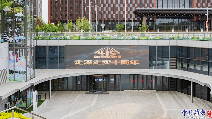 雄安商务服务中心下沉广场大屏循环播放全民国家安全教育日宣传海报、视频。吴玉婷 摄