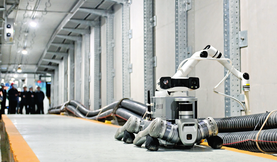 四足巡检机器人在雄安新区雄东电缆隧道内巡检(2025年4月15日摄)牟宇 摄