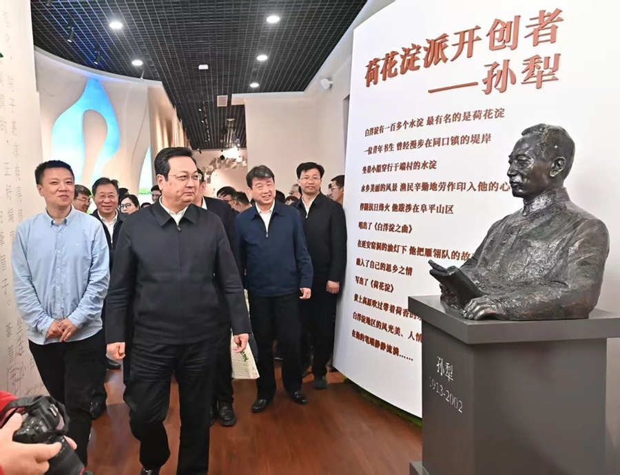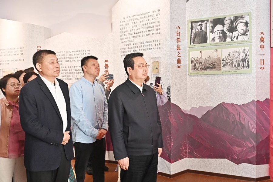 4月26日,省委常委,雄安新区党工委书记、管委会主任张国华(右一)参观荷花淀派文学馆。刘向阳 摄