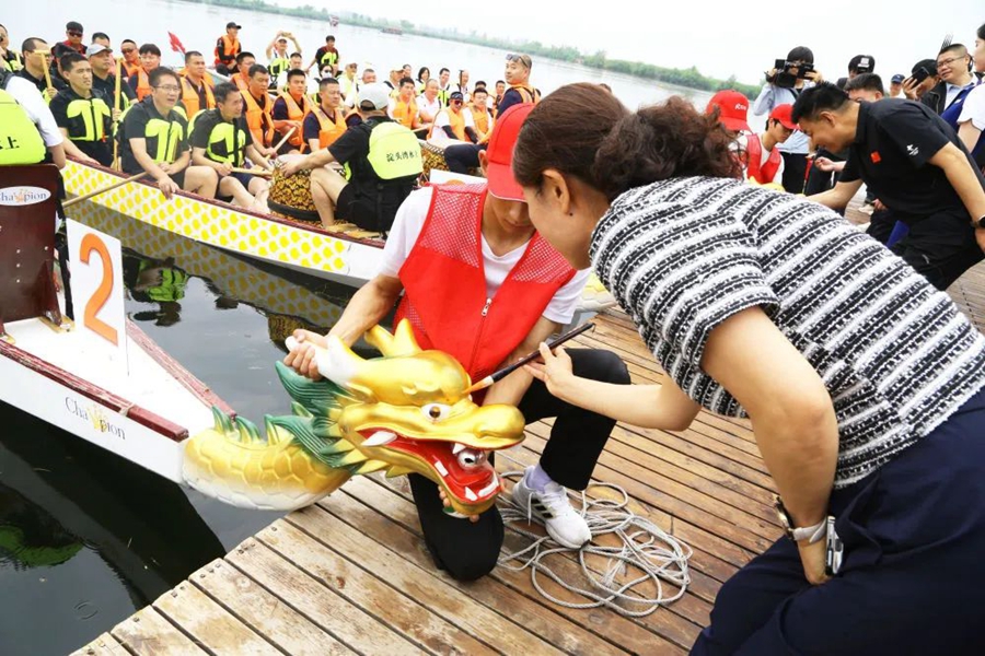 ↑5月31日拍摄的白洋淀龙舟竞赛的赛前龙舟点睛仪式现场。(受访单位供图)