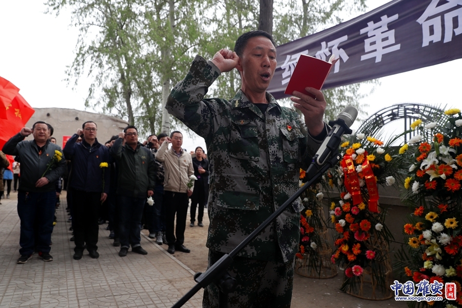 中国雄安官网4月3日电(记者张鹏 毛鹤然) 在清明节到来之际,4月3日上午,雄安新区容城县在北后台烈士陵园集中举行2018年清明节祭奠活动,庄严纪念长眠于此的497名革命先烈,党员代表重温入党誓词,并向革命先烈敬献鲜花、花篮,寄托无限哀思。