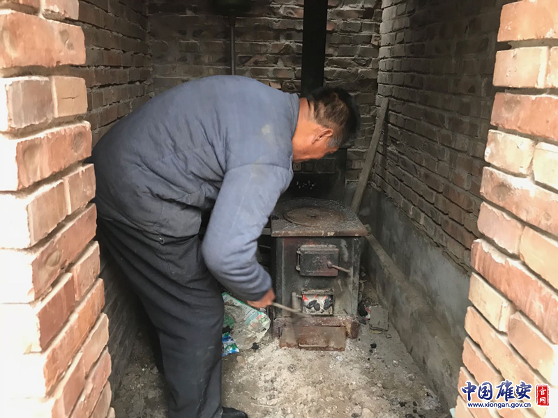 昝岗镇赵岗村燃煤农户李德勇向记者展示燃烧旺盛的清洁煤。中国雄安官网记者封俊龙 摄