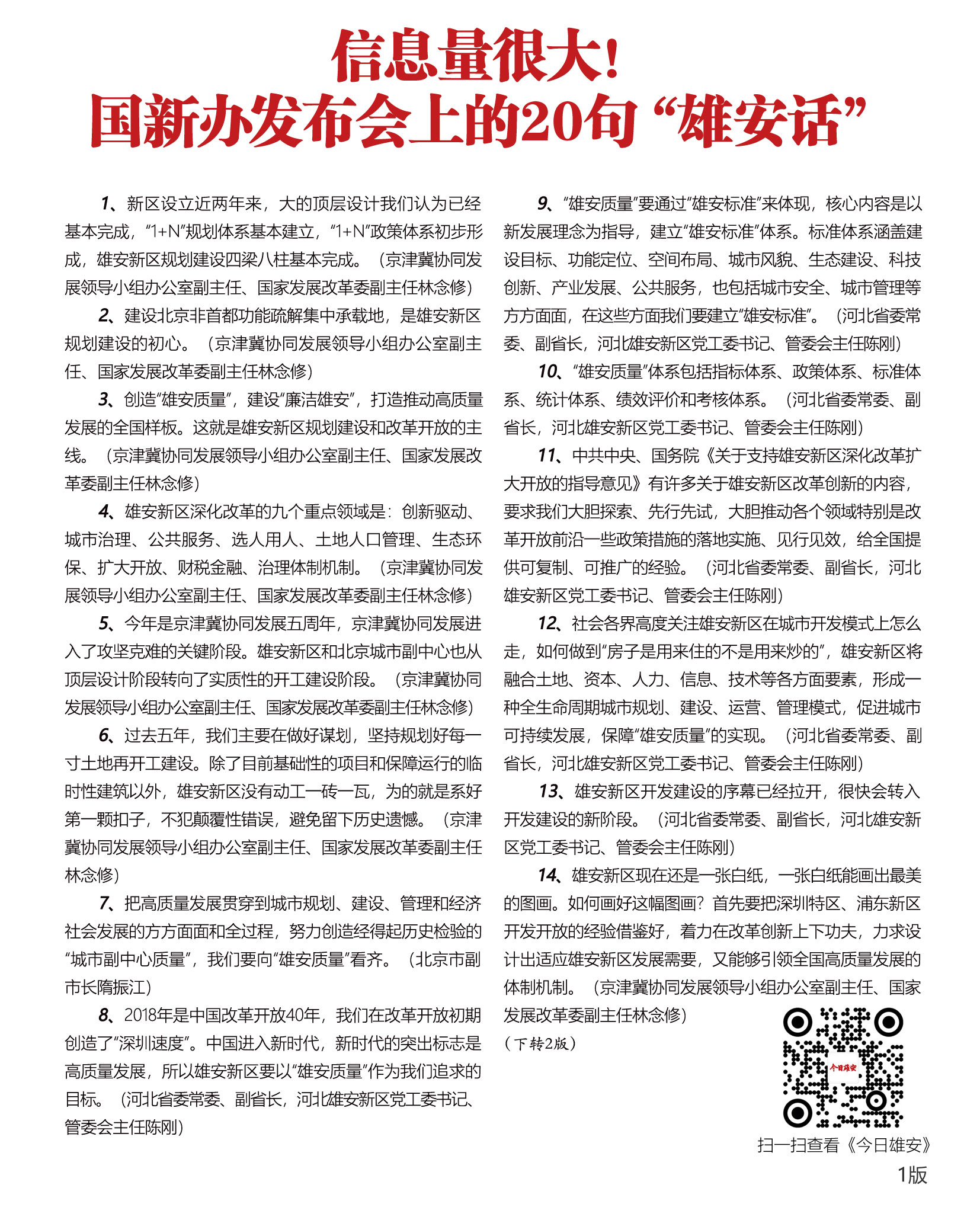 信息量很大!国新办发布会上的20句“雄安话” 。