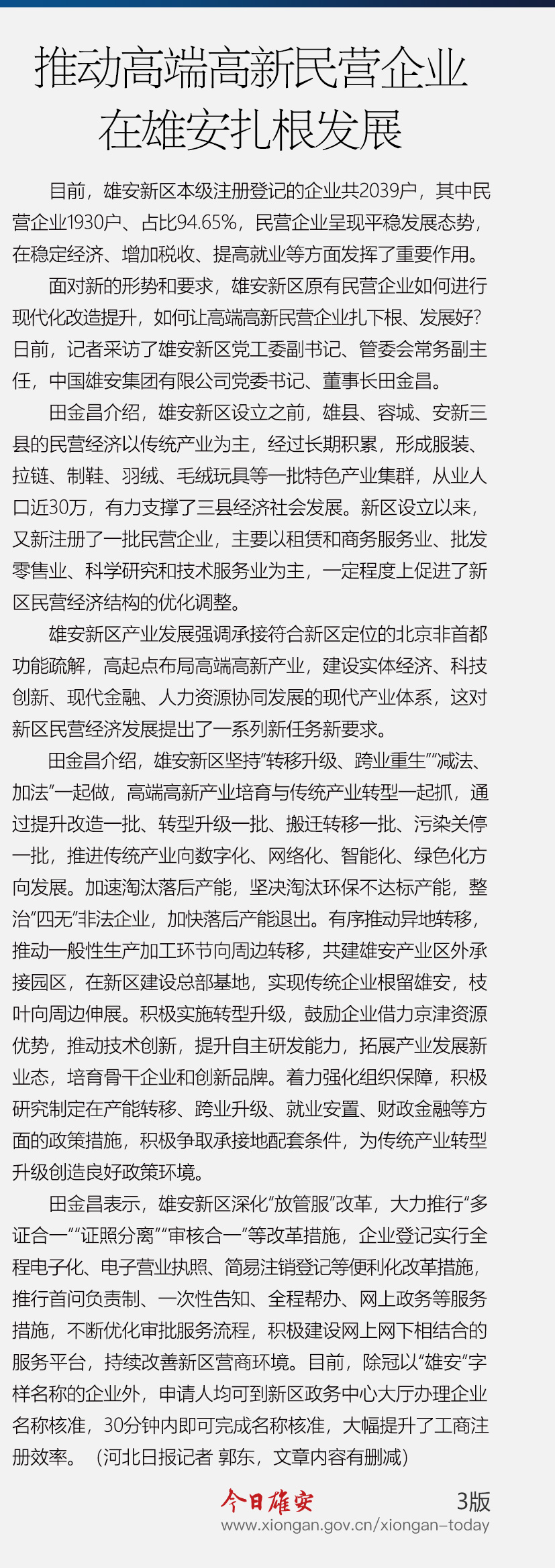 面对新的形势和要求,雄安新区原有民营企业如何进行现代化改造提升,如何让高端高新民营企业扎下根、发展好?