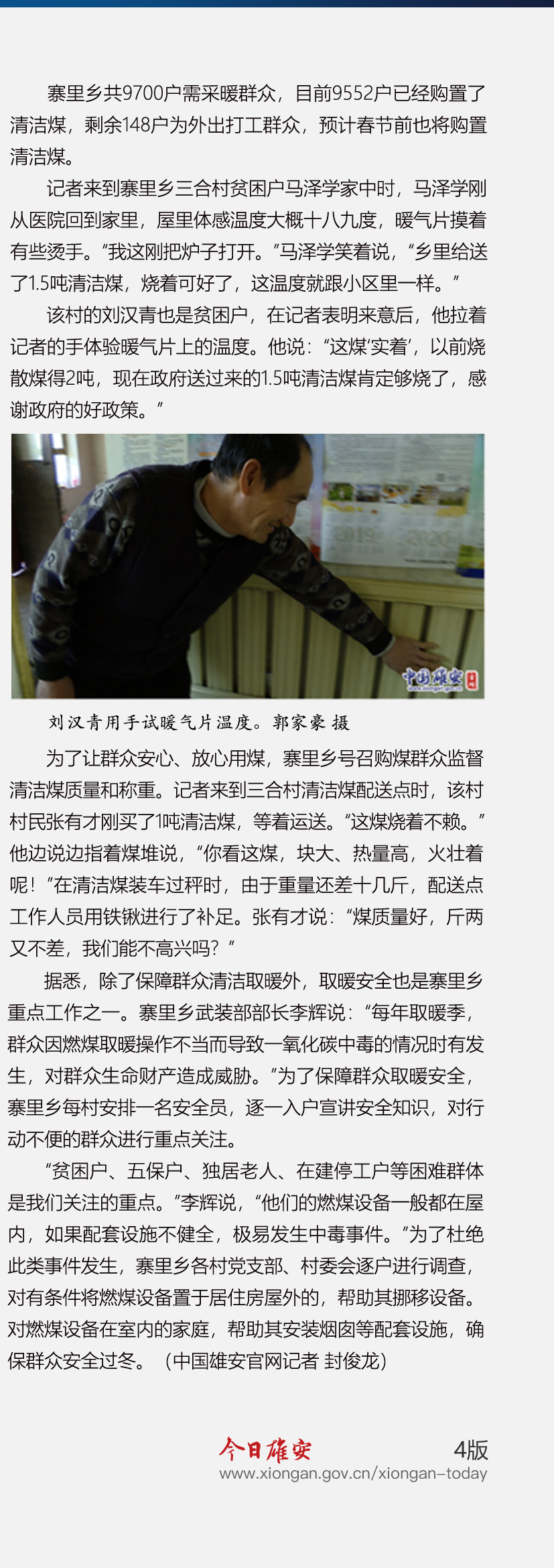 雄安安新县寨里乡持续推动清洁煤推广 确保群众安全温暖过冬