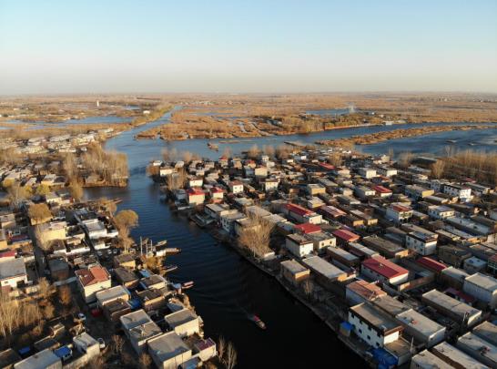 这是2018年12月6日无人机拍摄的雄安新区白洋淀上的村庄。