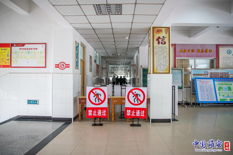 据悉,七间房中学共有352名初三学生,其中走读生有146名,为了减少走读生和寄宿生接触,该校将教学楼、操场、厕所等各个区域均进行了划分。此外,学校按照雄县教育局“三个覆盖”的要求,安排老师对全区域、全时段、全部学生进行管护,最大程度降低疫情风险。图为七间房中学教学楼内走读生区域和寄宿生区域之间的隔离指示牌。中国雄安官网记者马梦迪 摄