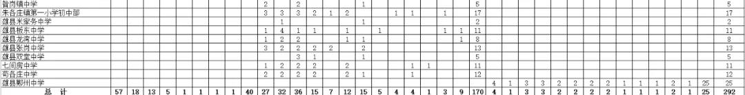 鄚州中学高中部招聘25名;初级中学招聘170名;小学招聘40名;幼儿园招聘57名。详见附件1:《2020年雄县中小学(幼儿园)教师招聘学科需求计划表》;附件2:《2020年雄县中小学(幼儿园)教师招聘岗位分配表》。