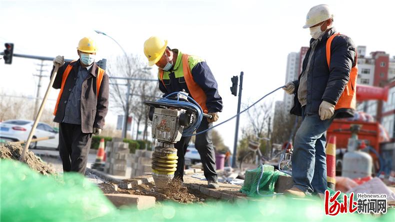 日前,在沧州市区解放东路沧州市主城区雨污分流疏改工程施工现场,市政工人正在进行路面破除、开挖沟槽等工作,现场一片忙碌景象。通讯员魏志广 摄