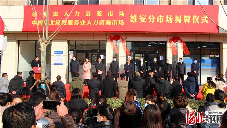 12月11日,河北省人力资源市场雄安分市场、中国华北家庭服务业人力资源市场雄安分市场在安新县举行揭牌仪式,这是雄安新区人事人才工作发展和建设的重要里程碑,标志着河北省人力资源市场雄安分市场正式挂牌运营。