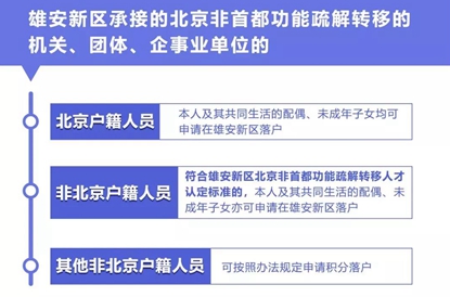 答:除雄安新区承接的北京籍转移人口、引进的人才、原籍雄安新区的大中专院校学生、直系亲属投靠且按相关规定可在雄安新区直接办理落户的人员外,在雄安新区合法稳定就业并居住的非雄安新区户籍人员,符合本办法规定条件申请积分落户的,适用本办法。