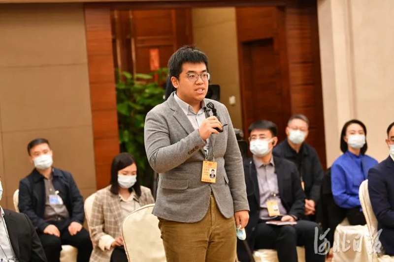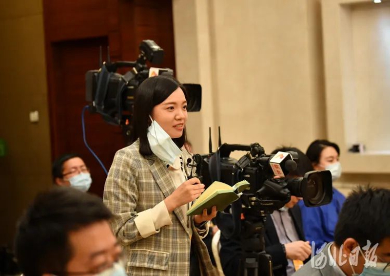 3月7日,十三届全国人大五次会议河北代表团举行新闻发布会。图为河北日报记者现场提问。河北日报记者赵威 摄