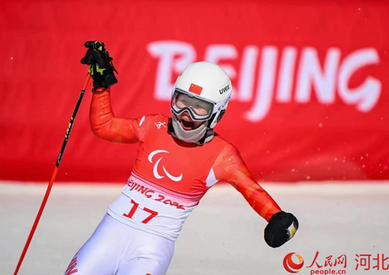 在张家口赛区国家冬季两项中心举行的残奥冬季两项女子短距离站姿组比赛中,河北运动员郭雨洁“旗”开得胜,收获该项目金牌;
