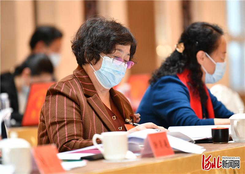 3月7日,河北代表团的代表们在小组会上认真记录。河北日报记者赵威 摄
