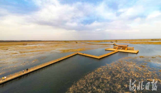 2022年3月27日,春日暖阳下的白洋淀新安北堤木栈道。河北日报记者赵海江 摄