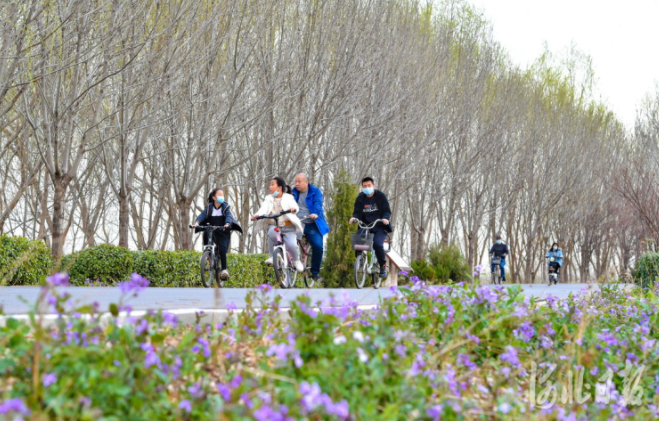 2022年3月26日,游客在堤顶路骑行。河北日报记者赵海江 摄