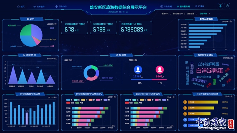 雄安新区全域旅游智慧平台项目(2020年3月数据测试阶段)。雄安联通供图