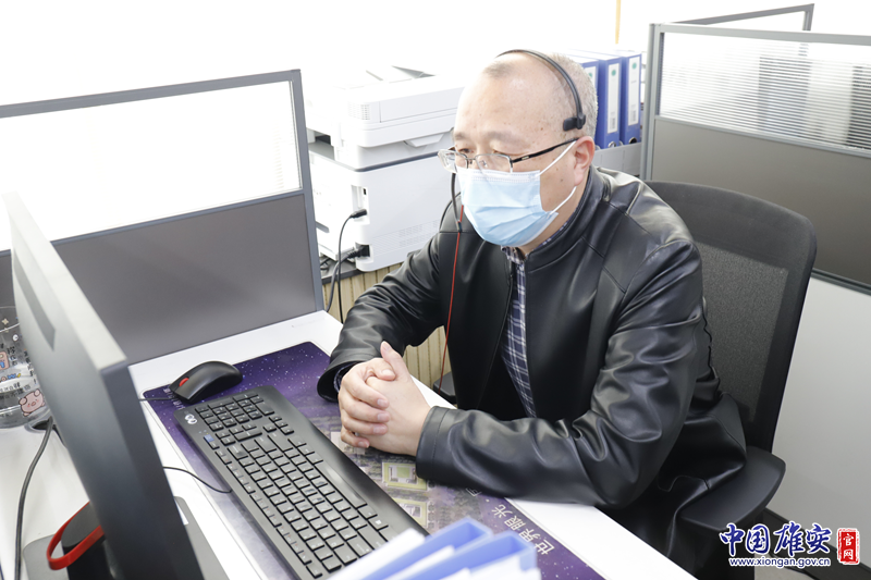 毛捍军在接听群众来电。雄安新区公共服务局供图