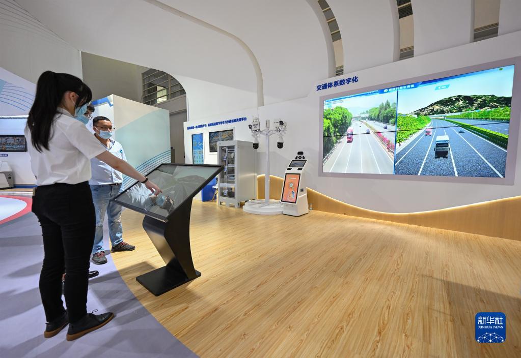 7月22日,观众在第五届数字中国建设成果展览会体验福建高速数字孪生及仿真决策平台项目。新华社记者周义 摄
