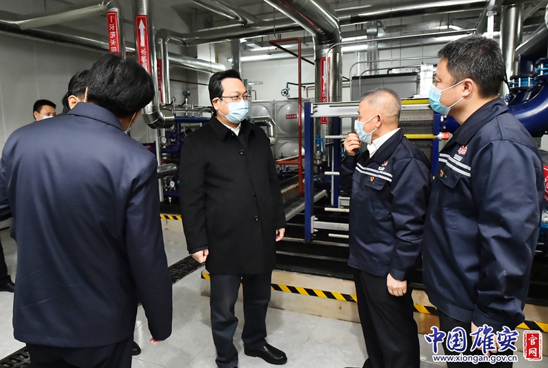 张国华一行首先来到容西片区能源站和雄东片区热力站,实地察看站点运行和供热情况,并听取了相关情况汇报。他强调,党的二十大明确提出“必须坚持在发展中保障和改善民生”。各级各相关部门要认真贯彻落实党的二十大精神,坚持以人民为中心的发展思想,扎实做好冬季供暖保障,进一步完善服务机制,及时回应群众关切,不断提升人民群众的获得感、幸福感、安全感。要聚焦构建清洁高效、多元支撑的能源供应体系,加强综合能源开发利用,充分做好热源保障,不断提高冬季供暖的稳定性和可靠性。要严格落实安全生产措施,进一步完善应急预案,强化日常巡查,全面排查化解风险隐患,确保广大人民群众温暖过冬、安全过冬。