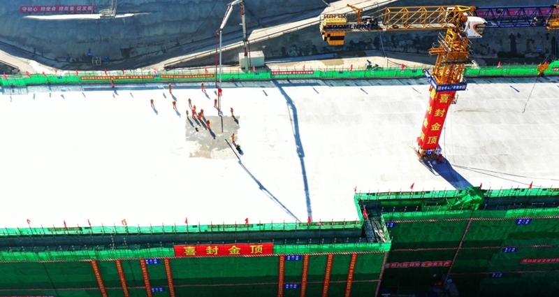 中国电建市政集团承建的雄安R1线金融岛站最后一块顶板浇筑完成,标志着全线首个车站主体结构顺利封顶。河北新闻网记者刘光昱 摄