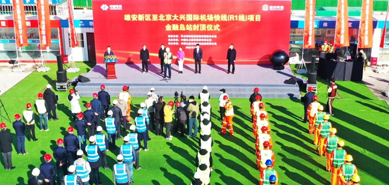 11月15日,雄安新区至北京大兴国际机场快线(R1线)金融岛站封顶仪式现场。河北新闻网记者刘光昱 摄
