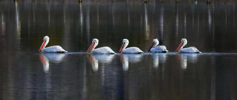 记者从河北省林业和草原局了解到,摄影爱好者日前在河北省涞源县涞源湖畔拍摄到5只罕见的大鸟。经河北省林业和草原局组织省内外多位专家鉴定,该鸟为国家一级保护野生动物、世界濒危动物卷羽鹈鹕。