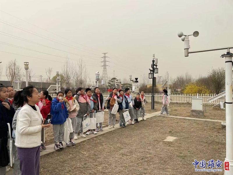 学生们正在观测场参观气象微型智能观测设备。雄安新区气象局供图