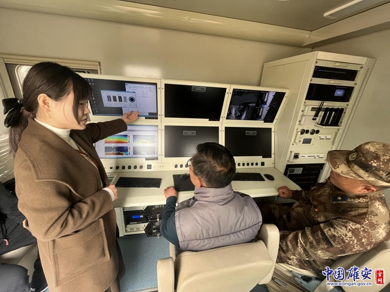 工作人员向群众讲解气象应急监测车数据应用及野外实验。雄安新区气象局供图