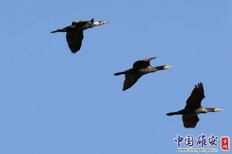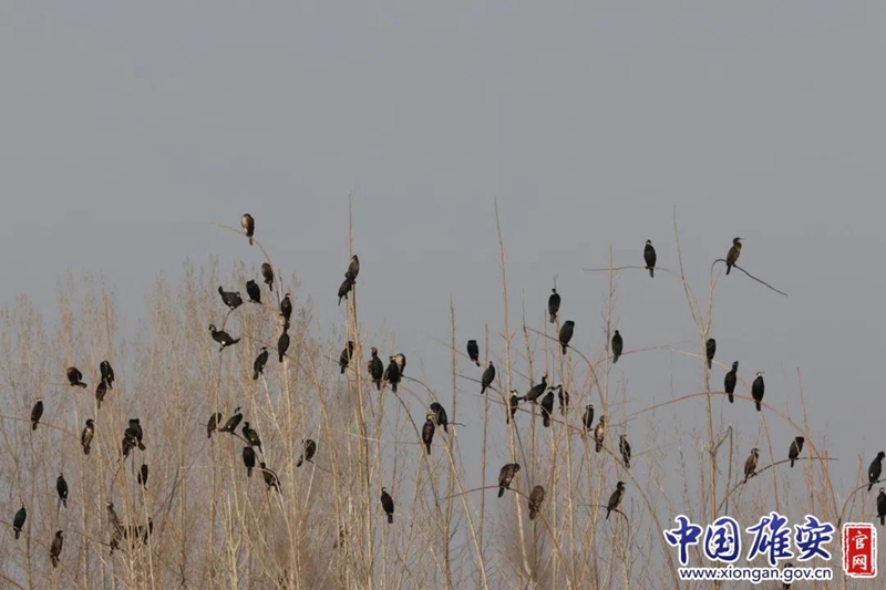 中国雄安官网3月24日电(李雪娇 通讯员高腾)冬去春来,万物复苏。近日,在雄安新区雄县林业综合服务中心组织开展的白洋淀春季候鸟迁徙季野生鸟类监测活动中,爱鸟护鸟志愿者记录到200余只野生普通鸬(lú)鹚(cí),这是在白洋淀单次记录到野生普通鸬鹚种群数量最大的一次。它们时而在水中捕鱼、嬉戏,时而在岸边和树上休息,当普通鸬鹚群飞过,犹如一股乌黑透亮的旋风刮过,场面颇为壮观。