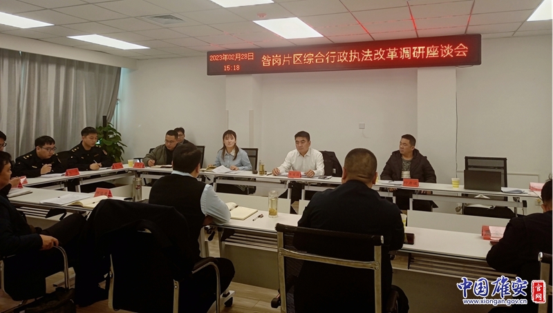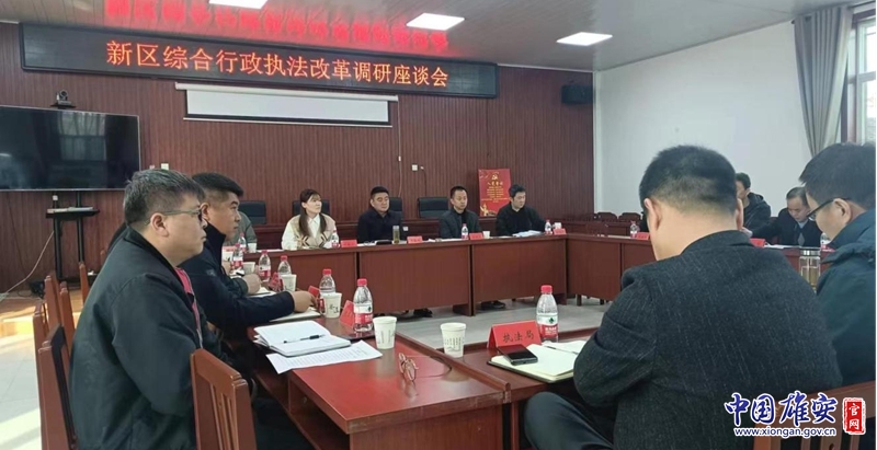 雄安新区综合执法局局长牛爱国带队到安新县开展综合行政执法调研并召开座谈会。雄安新区综合执法局供图