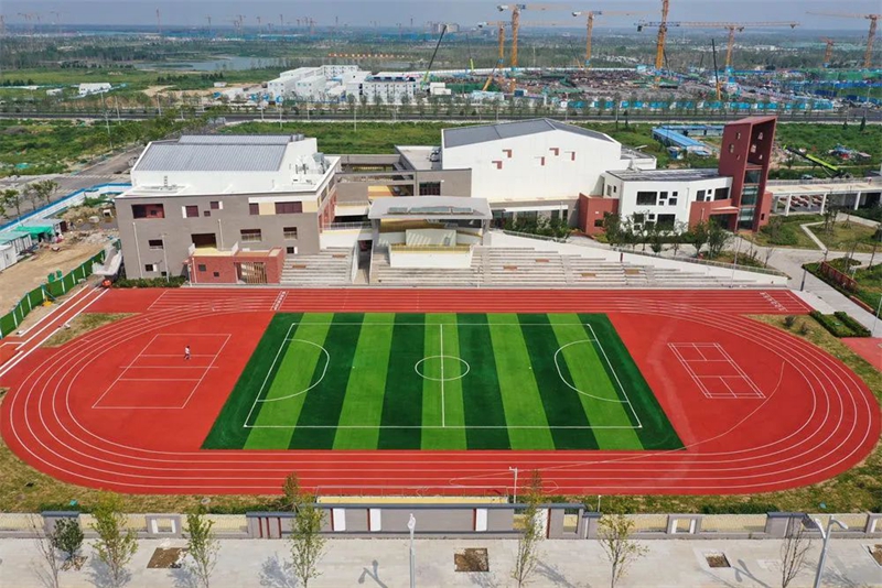 史家胡同小学雄安校区项目操场(2022年8月17日摄,无人机照片)。新华社记者朱旭东 摄