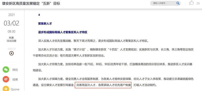 雄安新区作为北京非首都功能疏解集中承载地,雄安公安立足新区阶段实际,创新户籍和人口制度,相继牵头制定直系亲属投靠、积分落户和居住证实施办法等一系列政策文件,让更多的外来人口感受到接纳、包容和尊重。以服务保障北京非首都功能疏解人口落户为重中之重,立足新区“1+N”政策体系总体框架,主动对接疏解单位,给予疏解人员政策优惠倾斜,全力服务保障落户需求。会同新区有关部门大力实施“雄才计划”,通过制定人才落户明白卡、设立人才专户等措施,坚持“优先办、一次办”,为引进的人才提供优质高效全流程跟踪服务,确保人才来得了、留得住。持续推进新区车驾管业务承接工作,经多方研究后牵头制定《河北雄安新区机动车上牌管理暂行办法》,推动“冀X”挂牌上路,对新区承接疏解、引进人才、保障发展具有重要意义。