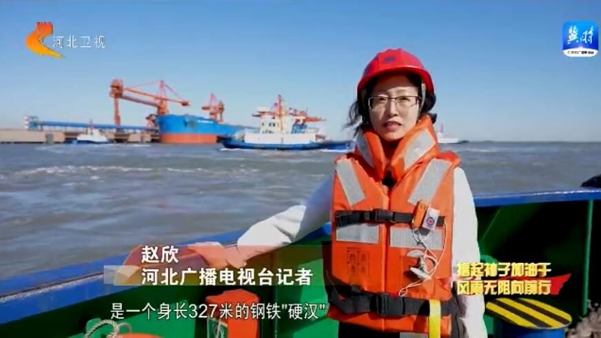 河北广播电视台记者 赵欣:汽笛声声,是贸易的“信风”。我身后的这艘矿砂船,是一个身长327米的钢铁“硬汉”,他怀揣30万吨铁矿石从巴西踏浪而来。这些铁矿石生产出来的钢铁,足以建造4座鸟巢。
