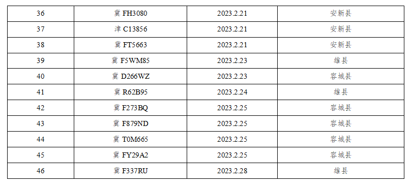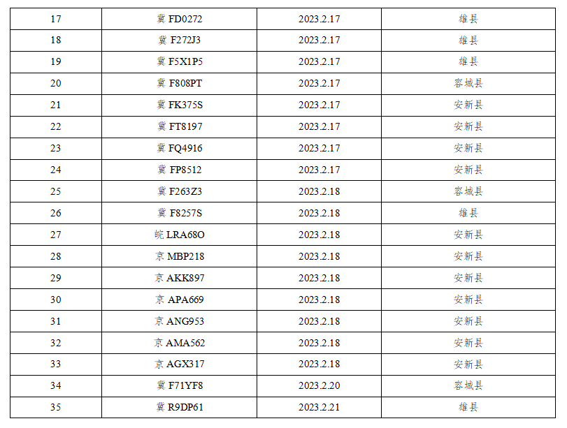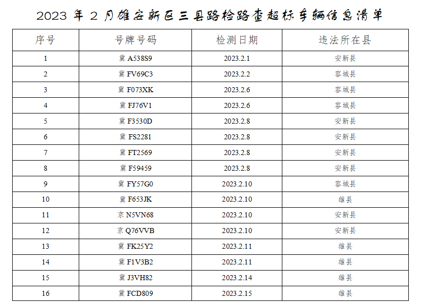 2023年2月雄安新区三县路检路查超标车辆信息清单