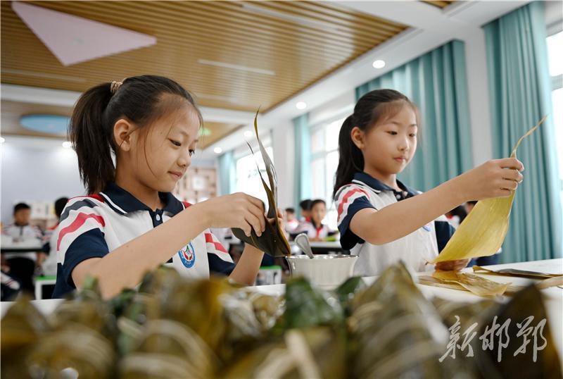 6月19日,邯山区九鼎小学的同学在包粽子。