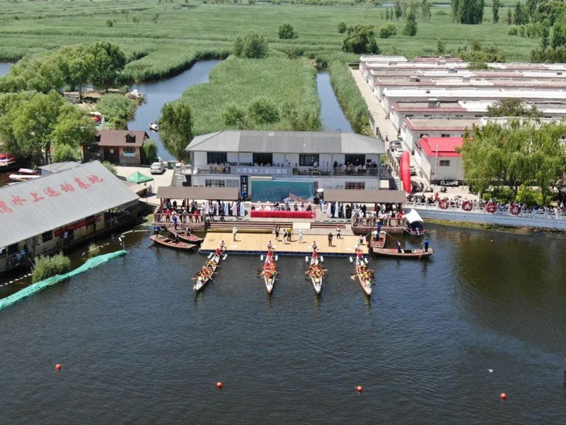 河北省雄安新区安新县新时代文明实践中心与端村镇新时代文明实践所组织开展“龙舟竞渡 喜迎端午”水上运动嘉年华活动,4支代表队在大淀头村游客中心码头劈波斩浪,传承龙舟文化,欢度端午佳节。