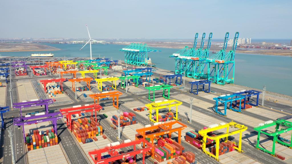 图为天津港全物联网集装箱码头(2023年2月21日摄,无人机照片)。新华社记者赵子硕 摄