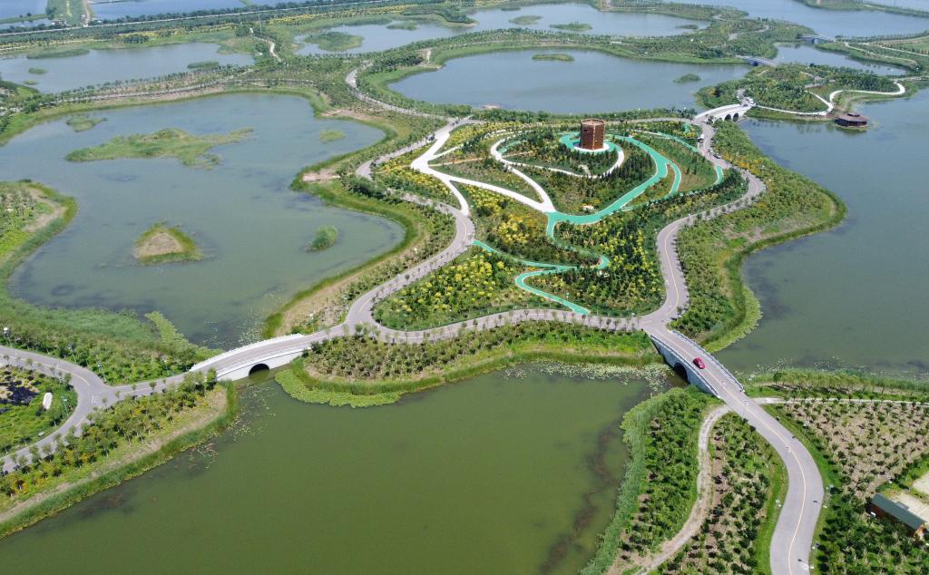 图为天津市西青区王稳庄镇生态廊道(2022年7月7日摄,无人机照片)。新华社记者赵子硕 摄
