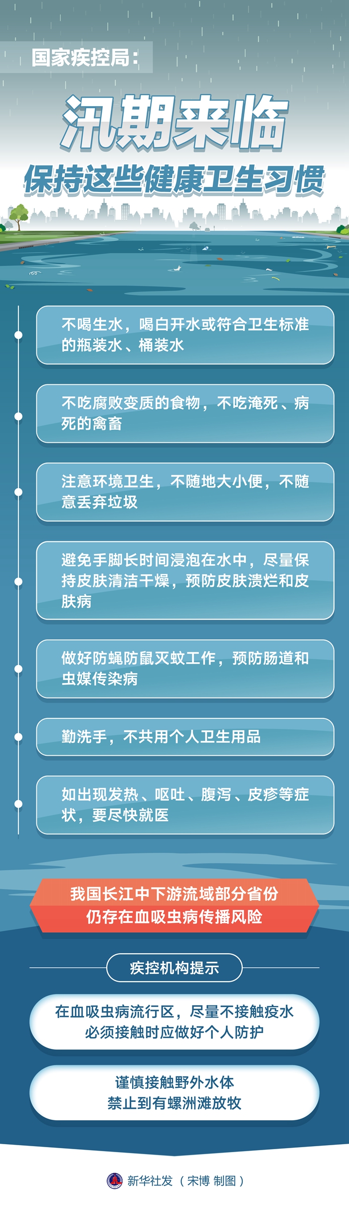 中国疾控中心卫生应急中心有关专家介绍,洪涝灾害易引起饮水水源污染,使灾区感染性腹泻、痢疾等水源性和食源性疾病暴发风险增加。另外,洪水淹没粪池、下水道等,导致动物尸体腐败,蚊蝇等媒介生物孳生,血吸虫、乙脑等虫媒及自然疫源性传染病发生风险会相应增加。