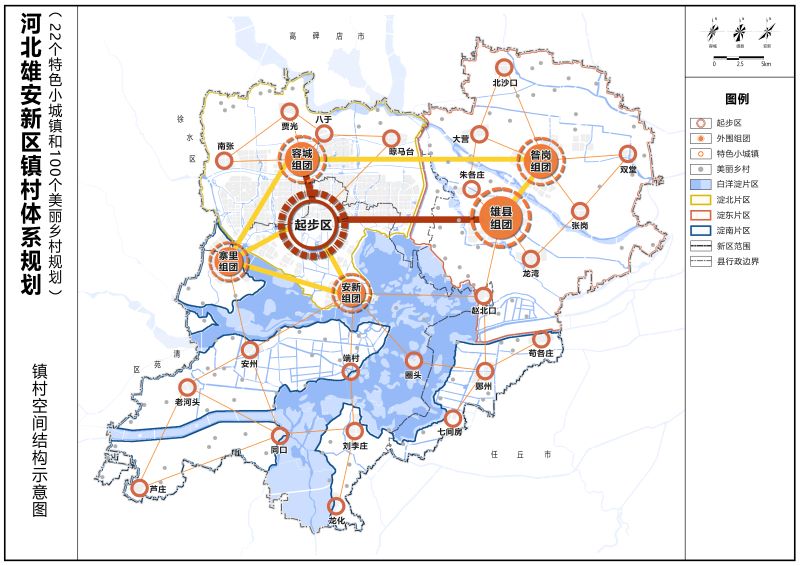 充分衔接生态保护红线、永久基本农田、城镇开发边界三条控制线的划定成果,严格落实相关管控要求,保障生态和农业空间,生态保护红线范围内严格控制新增建设用地和常住人口规模,以特色小城镇与美丽乡村为抓手落实耕地保护指标;划定详细规划编制单元,实现城镇开发边界外的规划管理全覆盖,将上位规划的战略目标、底线管控、功能布局、空间结构、资源利用等方面要求分解落实到各规划单元;分片引导城乡功能,综合考虑自然条件、空间特点、发展基础等因素,根据新区总体规划划定的白洋淀、淀北、淀东和淀南四个片区,对不同分区的镇村分类采取针对性的发展策略,结合分期目标有序推进镇村发展。