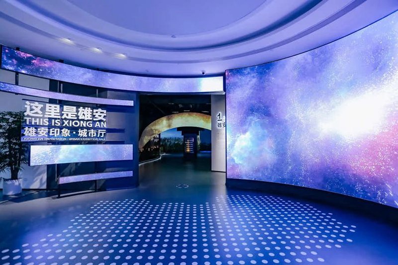 雄安印象展览馆坐落于雄安·电建智汇城41号地块融智港组团,总建筑面积约5300平方米,是一座集城市体验、艺术展陈、休闲娱乐功能于一体的综合性文化场馆,大家可以关注“雄安电建智汇城”微信公众号预约参观。“雄安印象·城市厅”以“这里是雄安”为主题,由“雄安·共生”“雄安·共建”“雄安·共享”三个展区组成,多元运用裸眼3D、多媒体触屏互动等数字科技,让您在虚实互动中体验“人在画中游”的白洋淀风景秀场和城市人文记忆,领略数字赋能城市的魅力。