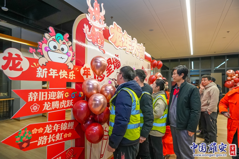 建设者们在新年愿望墙上写下新年祝福。中国雄安官网发