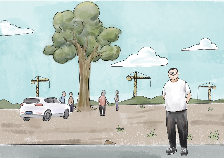 随着雄安新区启动大规模建设,古槐树周围塔吊林立,一派热火朝天建设场景。一些村民偶尔路过这里,会驻足看一看这棵古槐树,并合个影。