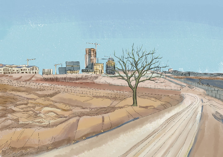 在雄安新区启动区一处核心地块,塔吊和在建大楼附近,一棵上百年的古槐树显得格外抢眼,它“见证”着雄安新区拔节生长。