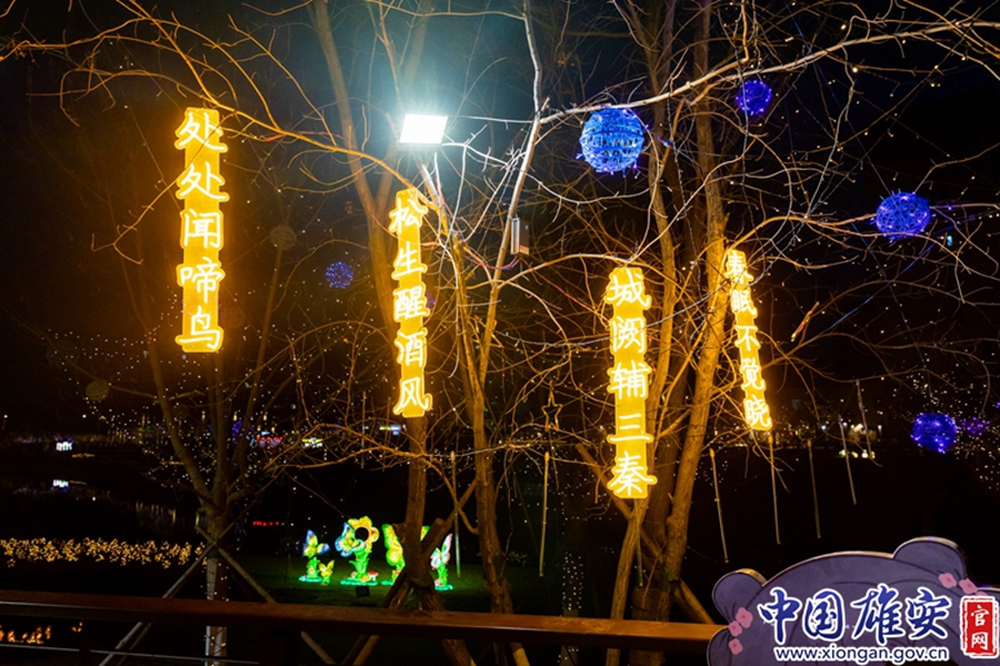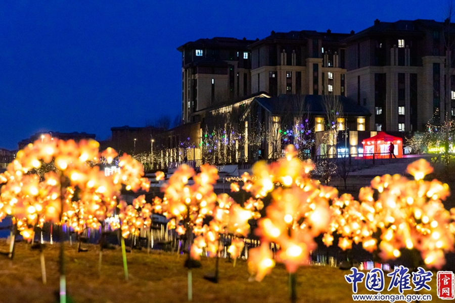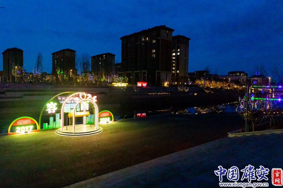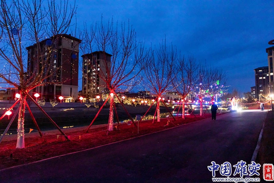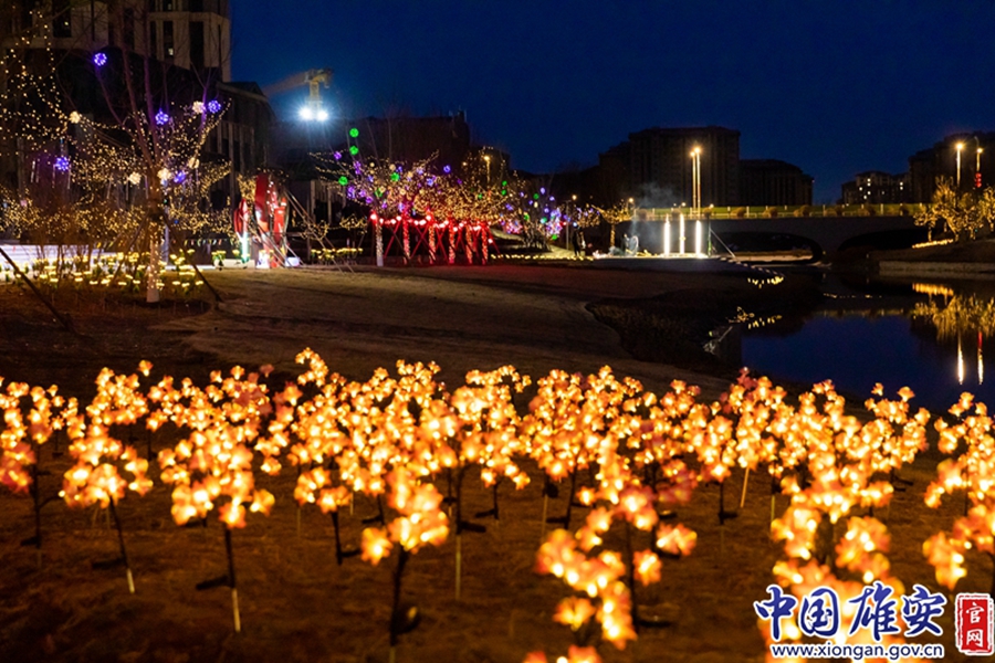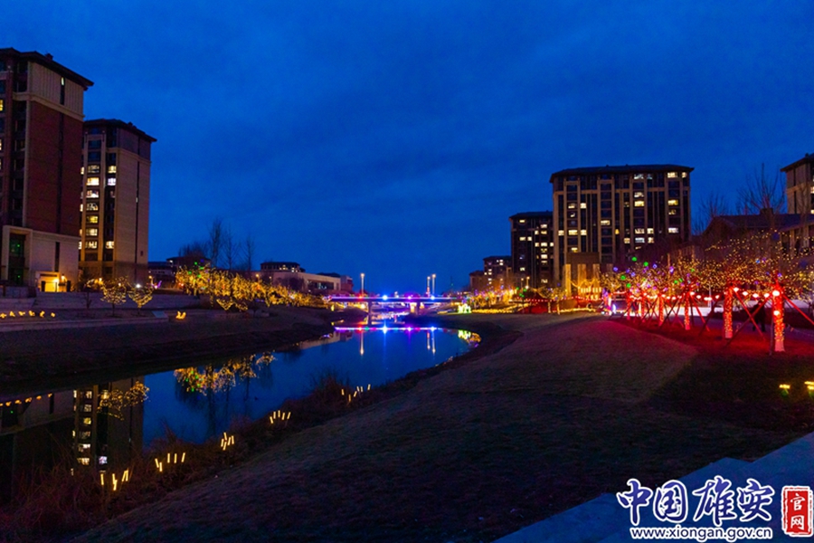 璀璨夺目的花灯,与龙泉河沿岸景观相互交融。中国雄安官网毛鹤然 摄