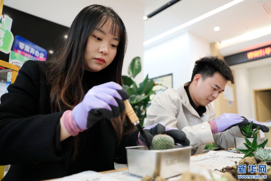 绿植盆栽制作培训。新华网 王立鹏 摄