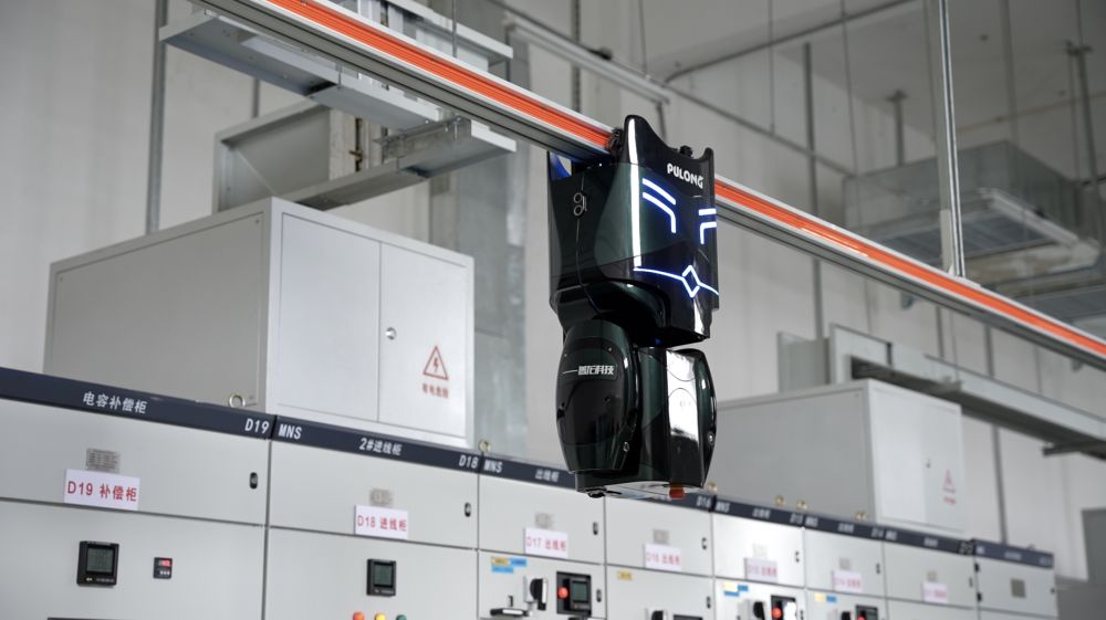 应用在配电室的挂轨式AI巡检机器人(3月25日摄)。新华社记者 田策 摄