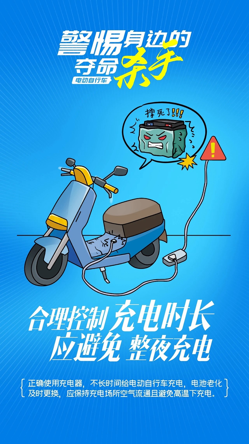 6.严禁在易燃品附近充电。电动车充电要远离易燃可燃材料搭建的电动自行车停放场所和易燃易爆物品。