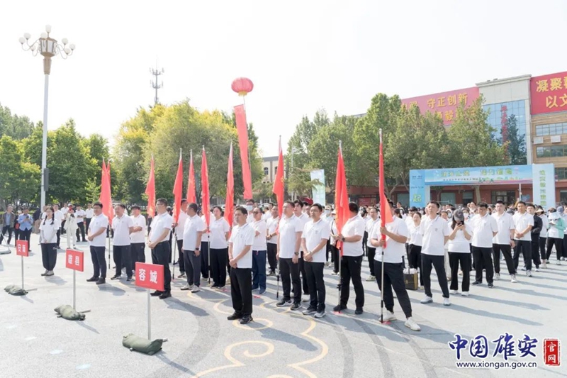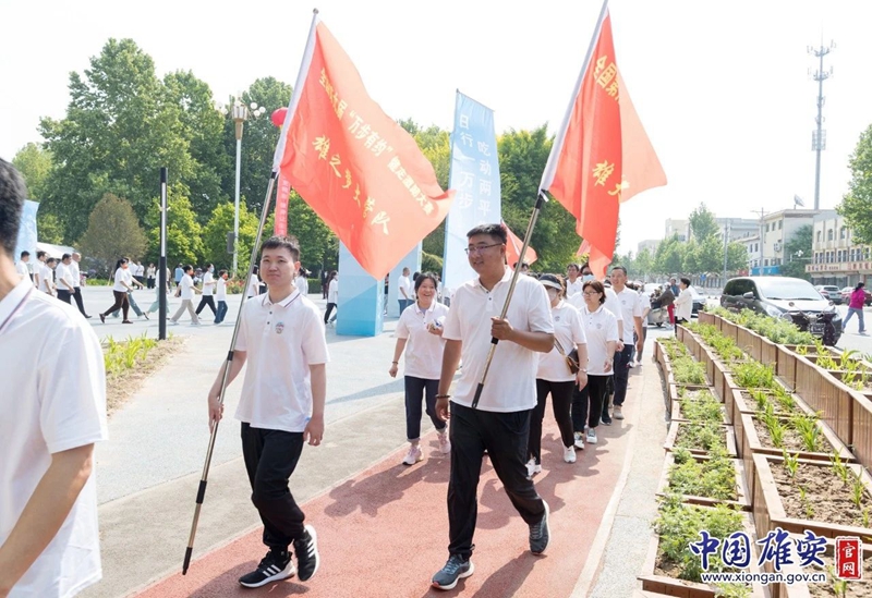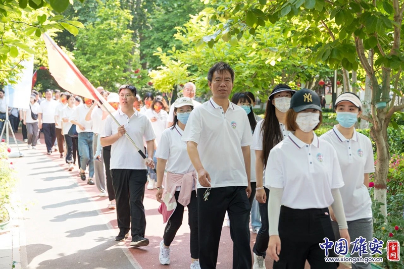 启动仪式上还进行了授旗仪式,授旗仪式结束后,门扬宣布活动正式启动。来自新区及三县有关单位的10支健走代表队伍共计270余人简单完成热身活动后,从启动仪式现场出发,绕雄县人民政府广场一周,再回到启动仪式现场。